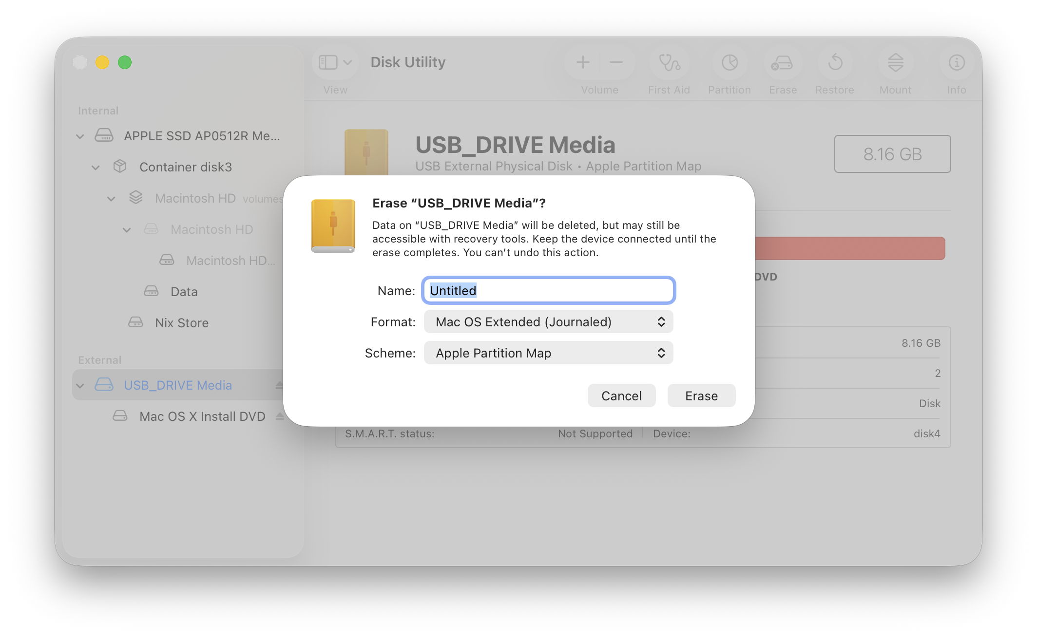 format.- Some people say you need to create a smaller partition if your USB stick is too large. Mine was 8GB, so I didn’t test this.
